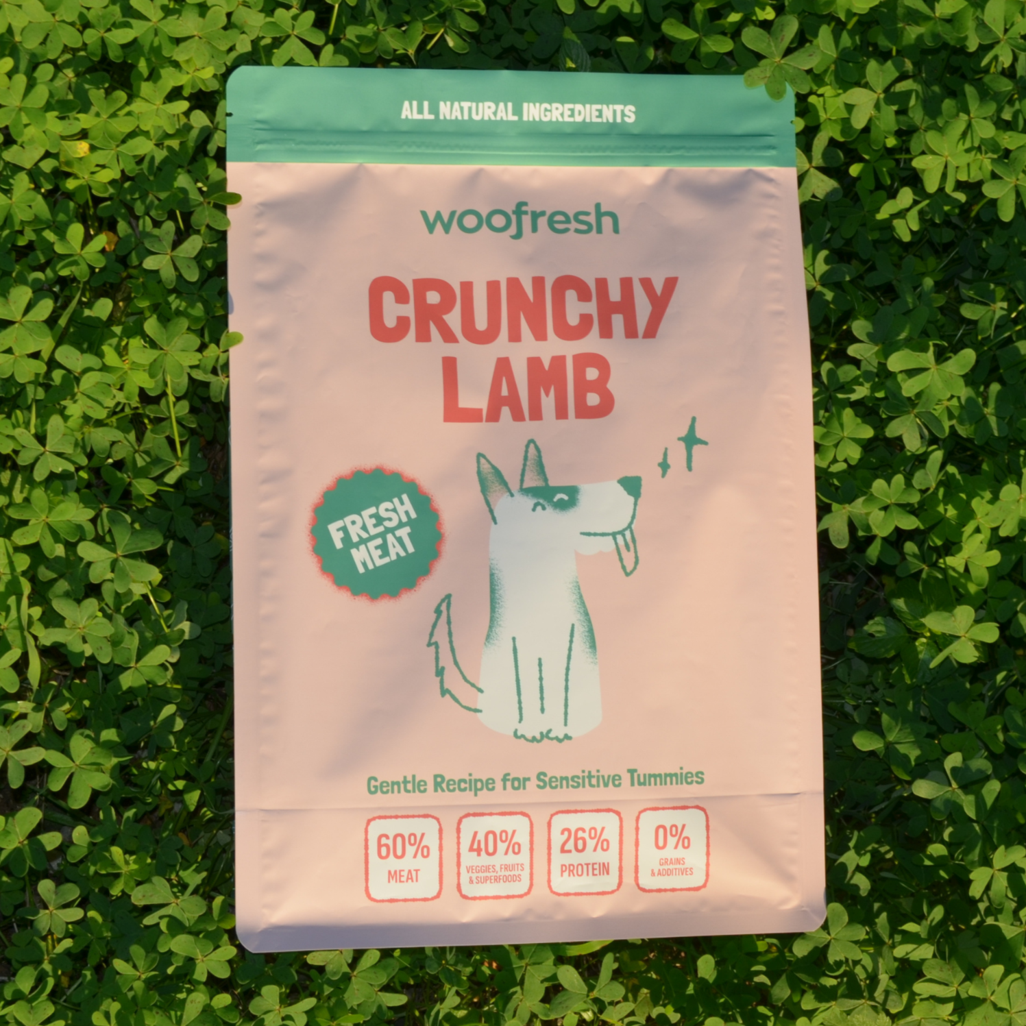 Grain-free, τραγανή τροφή με αρνί, γλυκοπατάτα, αρακά, μήλο, καρότο, βότανα, σολομέλαιο και πρεβιοτικά. Για υγιές τρίχωμα και υποστήριξη αρθρώσεων, με την ίδια φιλοσοφία φρέσκου φαγητού του woofresh.